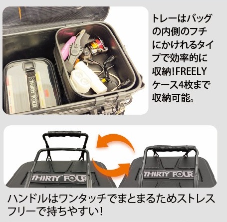 「FREELYスリムケース」や「FREELYスリムジグヘッドケース」がきれいに収まる専用設計で、遠征や車までのタックル運搬にピッタリ!インナーケースは4個までぴったり収納可能。