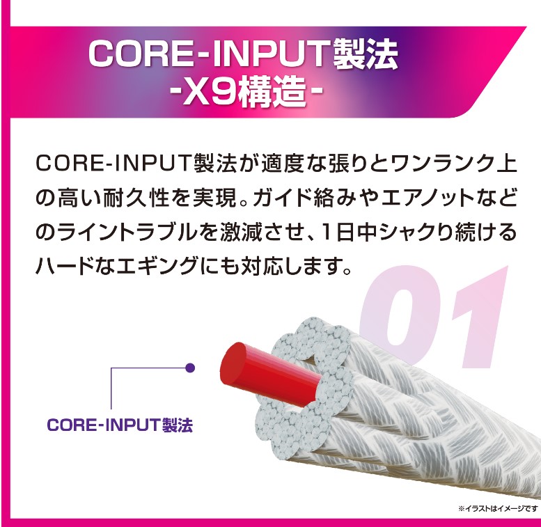 X9構造-が適度な張りとワンランク上の高い強度を実現。適度な張りによりガイド絡みやエアノットなどのライントラブルを激減させます!