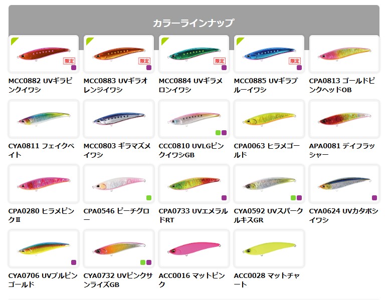 UVギラメロンイワシ, UVギラピンクイワシ, UVギラブルーイワシ, UVギラオレンジイワシ
