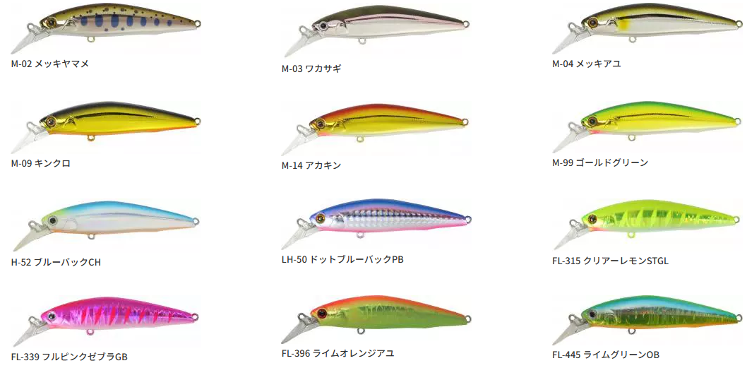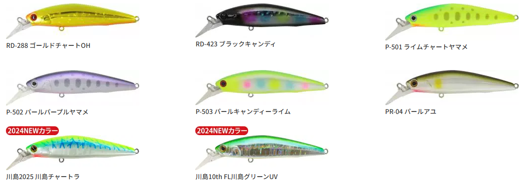 川島チャートラ, ブルーバックCH, アカキン, ゴールドグリーン, ダークオリーブヤマメ, ゴールドチャートOH, ライムチャートヤマメ