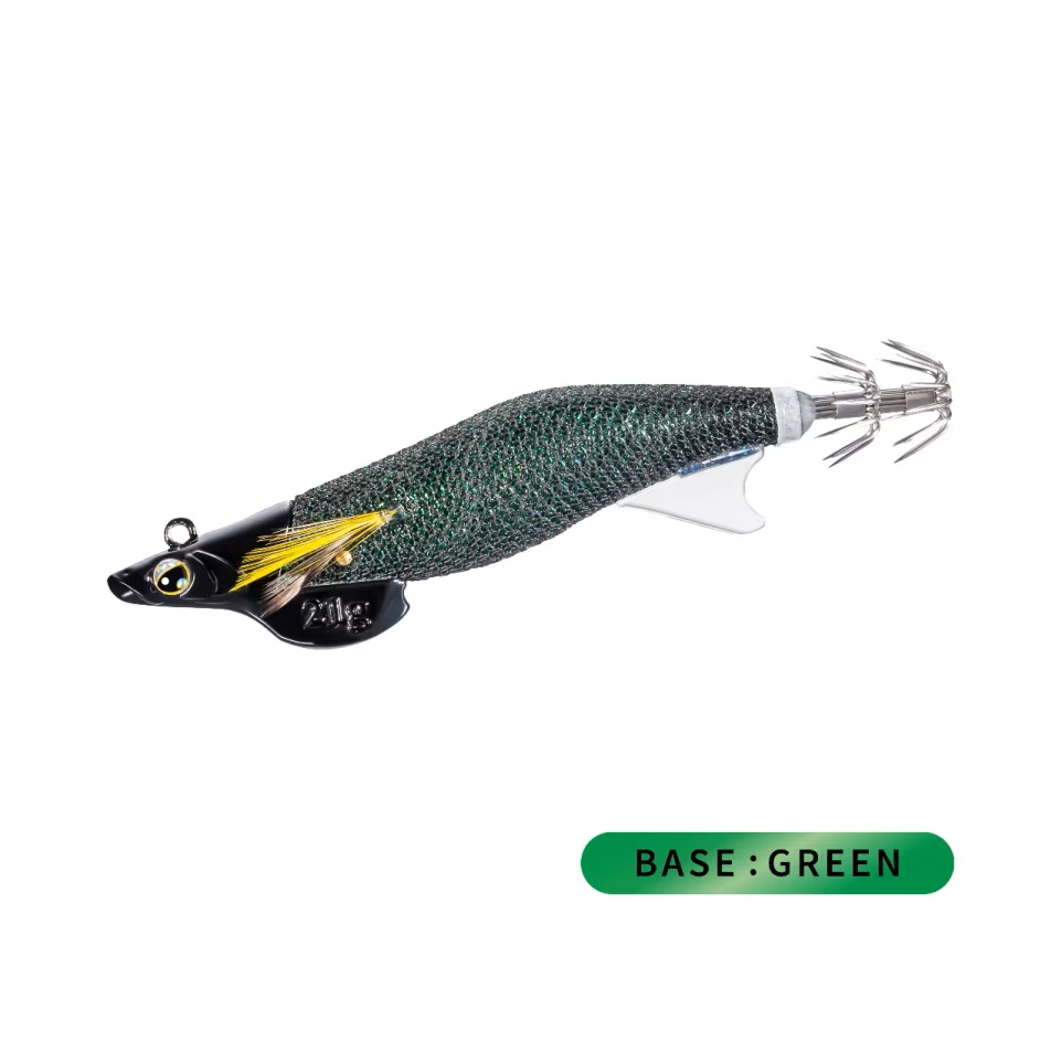 アントラージュの特徴は、スタビライザーフィンの搭載により、フォール時はヘッドを下に向けて安定した姿勢ですばやく沈下し、ジャーク後のステイもボディのロールやブレを抑えて姿勢がピタッと安定!素早い沈下と安定した姿勢でシビアな状況でもイカを抱かせます!