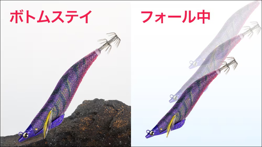 先行してリリースされているアントラージュ シーグル フラッシュブーストモデルで、その基本性能の高さは実証済み。その性能はそのままに、フラッシュブースト非搭載のノーマルモデルが新たに登場です。そして全カラー下地のテープ有りの仕様で、エギのシルエットがよりハッキリと出ることがアントラージュ シーグルの特徴。特にマズメのローライト時やナイトゲーム、濁り潮や光の届きにくいディープレンジなどの光量が少ないシーンに効果を発揮。フラッシュブーストモデルとのローテーションにより、今までアプローチできていなかったイカにアピールが可能です。
