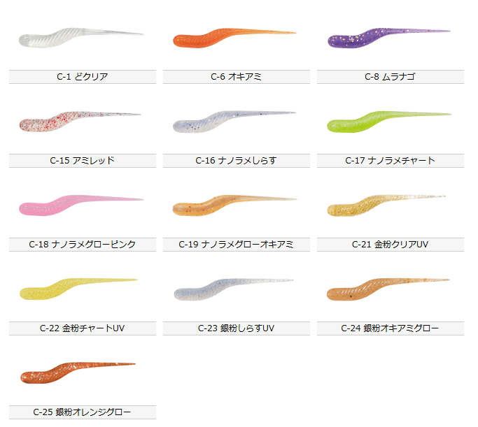 アミレッド, 金粉クリアUV, 金粉チャートUV, 銀粉オキアミグロー, ブルーチーズ, ブラックペッパー, レモンサワー, チリドッグ