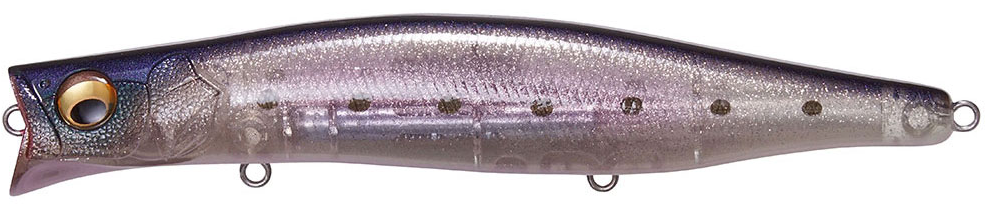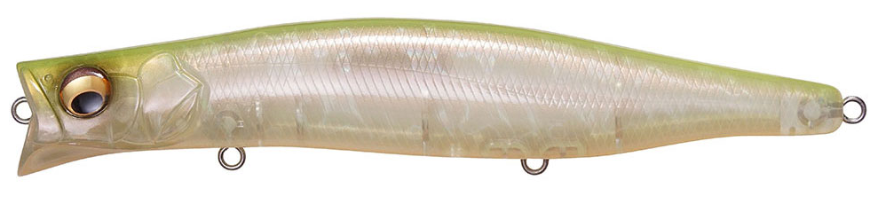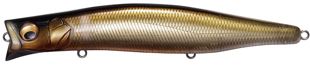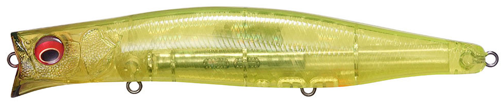 ランカーハンター久保田剛之プロデュースによるカゲロウシリーズの第3弾がKAGELOU155F。シーバスが表層を意識し、ボラや落ちアユ、コノシロ等の大型ベイトを捕食する状況でボリューム感のあるハイアピールボディが最も効果を発揮。大きく切られたダーターカップは水を受ける表面積の拡大により更に水を強く押し動かしターゲットへ猛烈にアピール。アクションはオリジナルサイズと同様、低~中速リトリーブで微細なナチュラルロール、中~高速リトリーブでアピール力のあるスライドを伴ったロールへと移行する(可変ロールアクション)を生み出します。KAGELOU155Fに搭載したLBOⅡは、ボディの大型化に伴い、ウエイト本体およびバランサーシャフトを新たに設計。KAGELOU124Fと比較してウエイト本体重量を2倍以上も増加させています。圧倒的質量を持つ新開発のベアリング内蔵ウエイトがキャスト時に瞬間移動!強力な推進ベクトルを発生させ、驚異的な飛距離を叩き出します。アクション開始時にウエイトは瞬時に前方のネオジム磁界に誘導・固着され、スイミングモードへと移行。リーリングの瞬間から即座にアクションを始動する圧巻のレスポンシビリティと異次元の飛距離を誇るKAGELOU155Fは対モンスターシーバス仕様・究極のマグナムシャローランナーです。