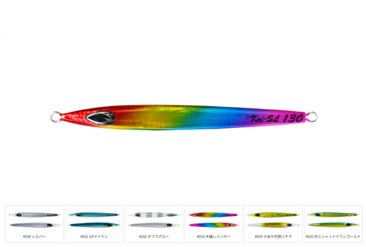 待望のKAI-SLが新しくなって登場!!  KAIより飛ばしてアピールしたい時は、このKAI-SLがおススメ!!&KAIが持つ、軽くスローな力で横方向へスライドするアクションを強化したのがKAI-SL!肉厚なボディがスライドしながら水を強く押して周辺の魚へアピールします。食い気がある魚はもちろん、低活性の魚にもこの強いアピール力が補食スイッチを入れるきっかけを作ってくれます!使い方は、ワンジャークごと丁寧にゆっくり行い、ジャークとジャークの合間にはポーズを入れるのが基本アクションです。当店でもヒラマサ、青物に高実績のジグです!!