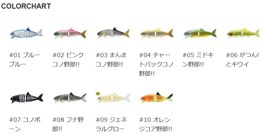 まんまコノ野郎, ミドキン野郎, がつん!とキウイ, コノボーン, フナ野郎, ジェネラルグロー