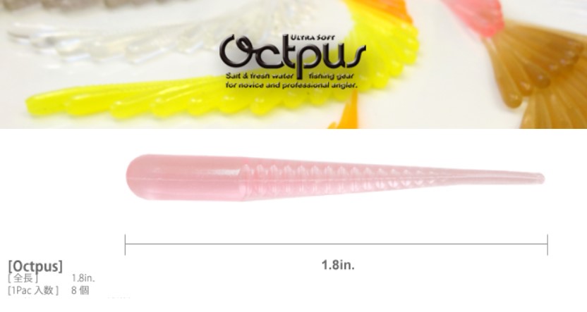 オクトパスはテールが小さく震えており、その微波動が伝わりバイトを誘発させるワームです。