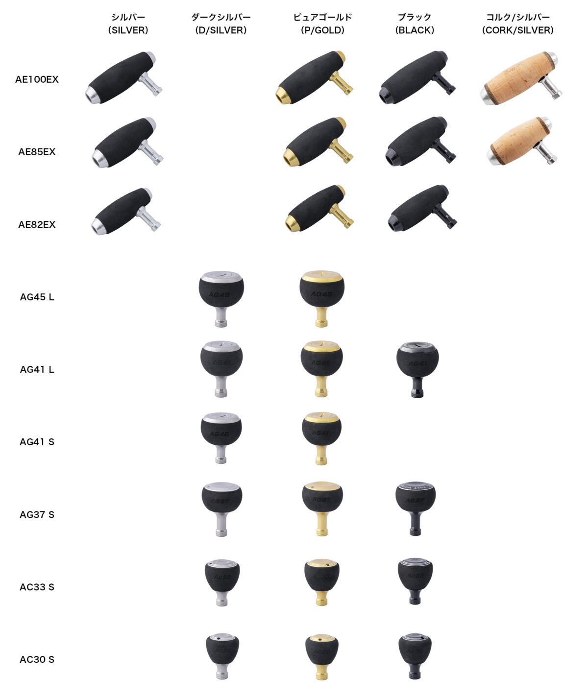 リールサイズ毎にデザインされたスタジオオーシャンマークのハンドルノブ!