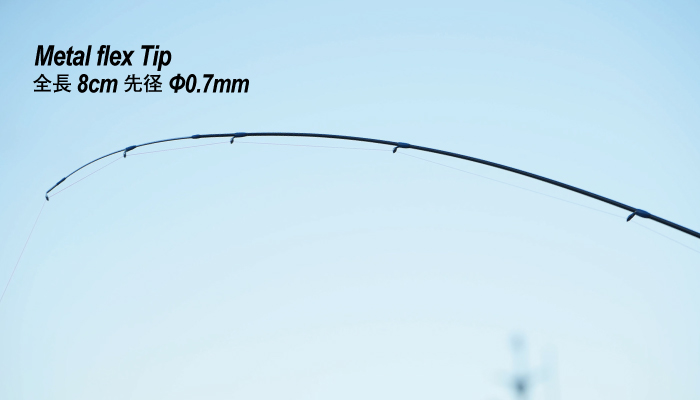 先径0.7mm、長さ8cmのチタン合金ティップはキャスト時のブレを大幅に抑えながらも、